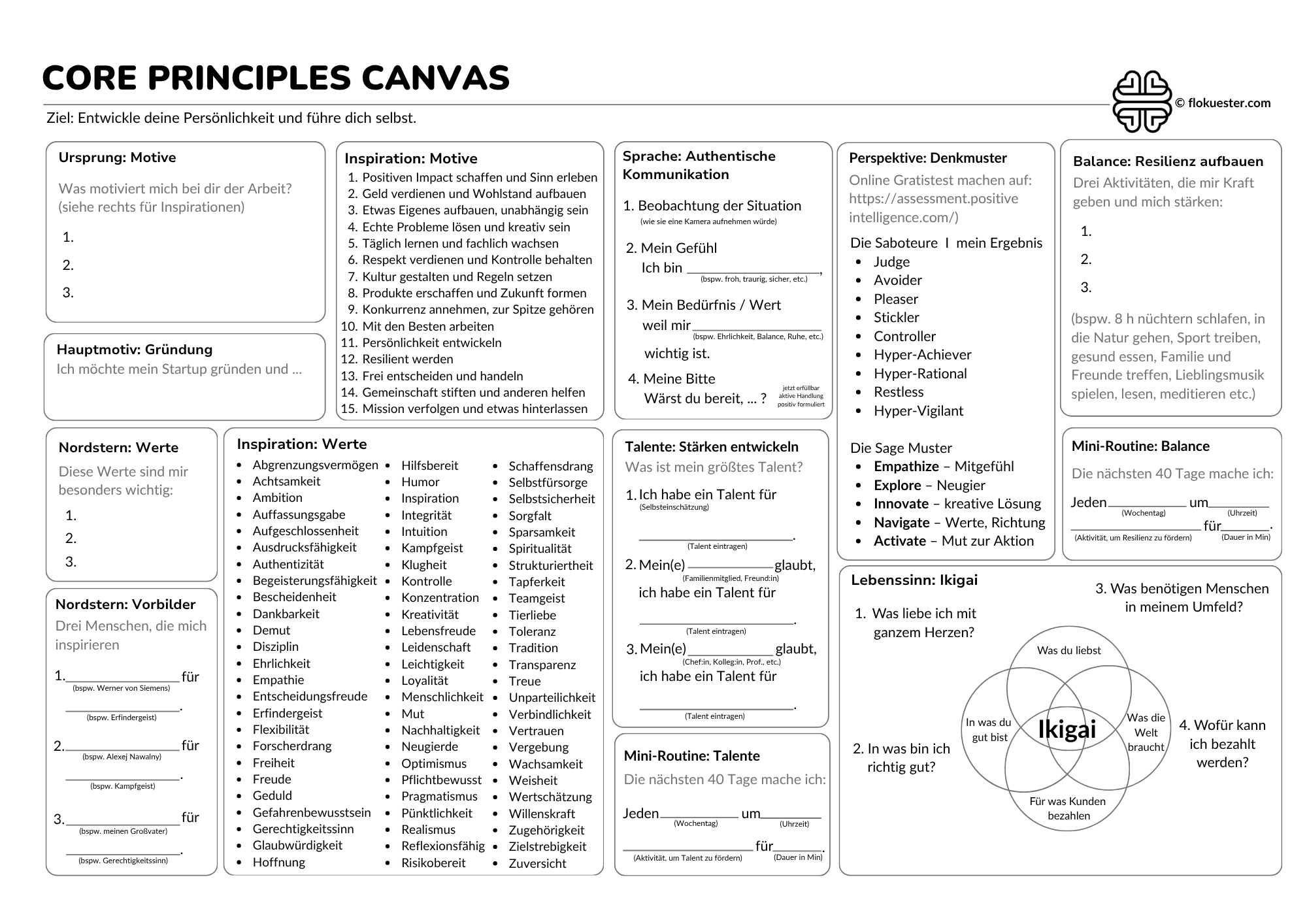 Die Core Principles Canvas hilft dir auf deinem Weg.